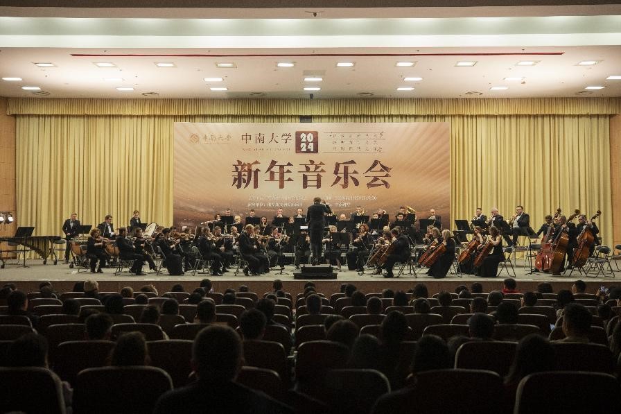 本网讯 12月29日晚,中南大学2024年新年音乐会在中南讲堂盛大举行。中国工程院院士田红旗,湖南省人力资源和社会保障厅党组书记、厅长李永军,共青团湖南省委副书记夏彬华、叶妙,校领导李景升、何军受邀出席,与800余名师生一起现场聆听音乐会,沉浸感受音乐之美。此次新年音乐会是中南大学“高雅艺术进校园”系列活动之一,由共青团中南大学委员会主办,中南大学兼职教授、国家一级指挥、...