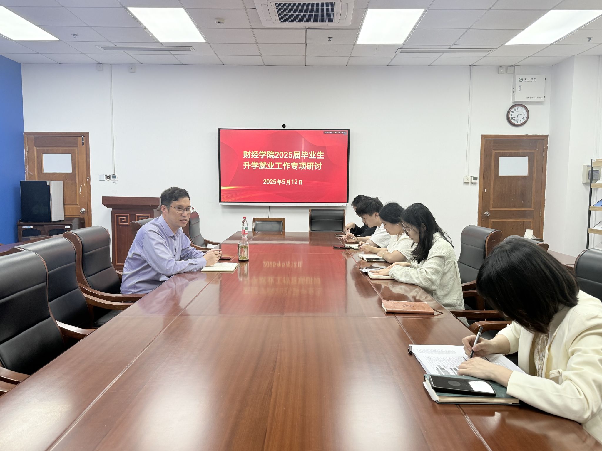 为了进一步攻克当前毕业生就业升学难题,5月12日,财经学院在1304D会议室开展2025届毕业生升学就业专项工作研讨,会议由学院党委副书记、副院长刘群东主持,全体毕业班辅导员参加。