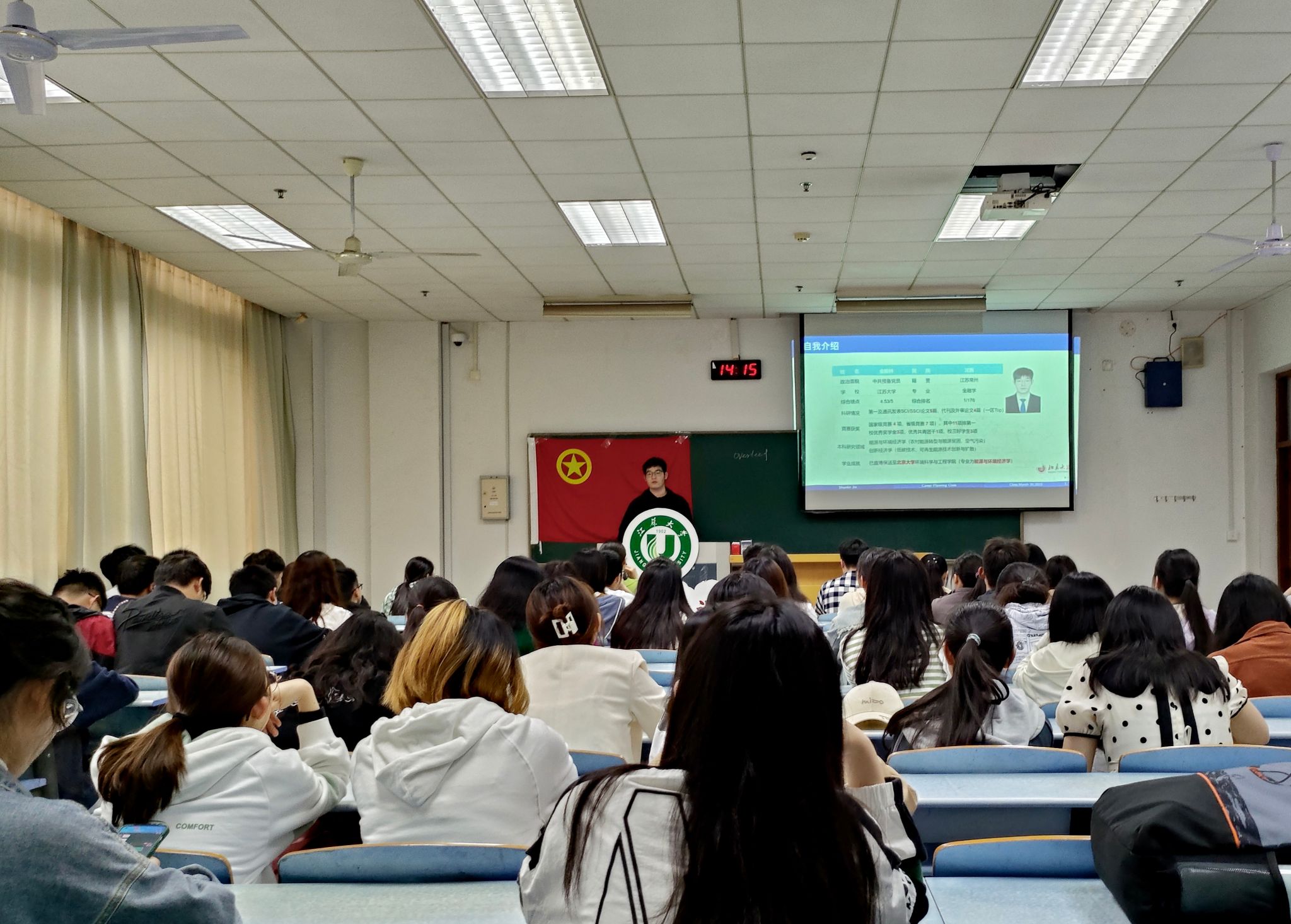 本次活动以“研途追梦,矢志科创”为主题,邀请财经学院优秀学生金顺林与同学们分享个人学习生活与科研竞赛的相关内容。活动开始,金顺林简要介绍大学成长经历与升学规划,为同学们的未来发展提供建议,指明方向。接着金顺林针对大学生科研竞赛准备工作,具体讲解科研项目简介、科研竞赛级别、科研注意事项三部分内容,结合自身经历,强调积极参与科研竞赛项目的重要性。同时,他重点介绍因素分析、回归分析等数据分析方法和模型构建方法,增强同学们对科研竞赛的认识,鼓励大家扩充自身知识储备。最后的问答环节中,同学们积极参与,提出自己关于科研竞赛的疑问,金顺林对同学们的问题进行一一解答。