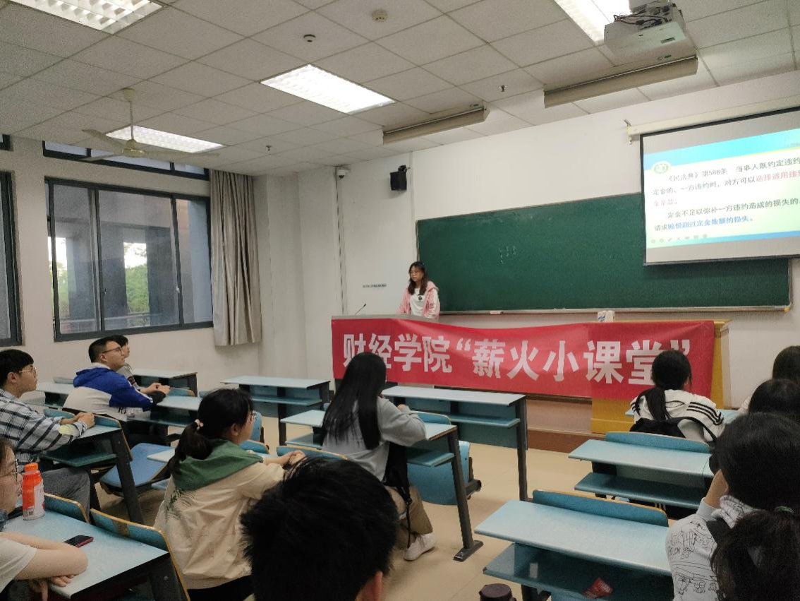 为激发同学们的学习热情,营造良好的学习氛围,4月4日至5月9日,财经学院在三江楼举办五次“薪火小课堂”,累计参加学员人数114人,设置课程门数五门,分别为英语、高等数学、线性代数、经济法概论和概率统计。五次活动分别由国贸2103杨慧、国贸2101高颖颖、金融2102何琦担任主讲。