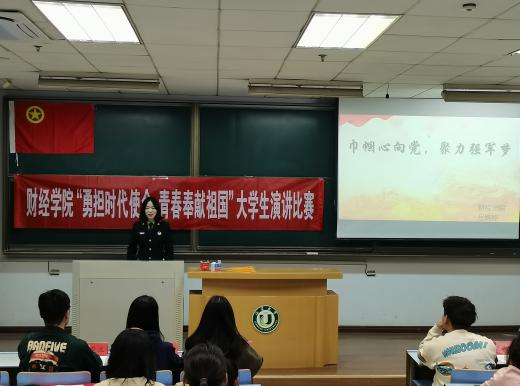 为全面展现新时代青年学生热爱祖国,奋发向上的昂扬风采,动员新时代青年投身于伟大的民族复兴,10月27日,财经学院在三江楼501举办“勇担时代使命,青春奉献祖国”大学生演讲比赛。