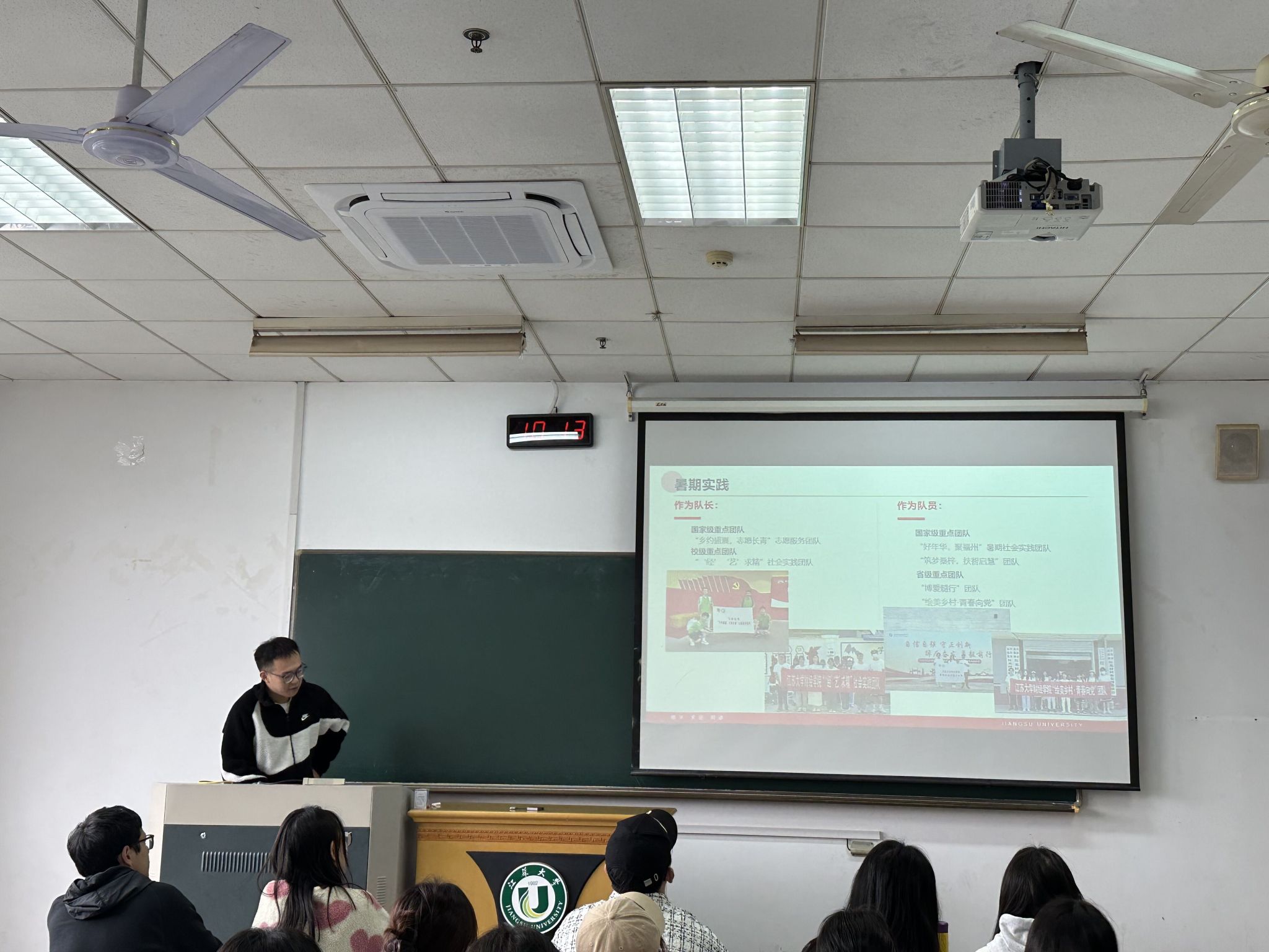张明杰则是从实践的经历与收获两方面进行讲述。他分享了一次社区调研的经历,在他们团队深入社区,开展问卷调查与座谈交流的过程中,他更加深刻地认识到社会发展中仍存在的问题与困难,也更加坚定了自己要为社会发展贡献力量的决心。张明杰指出,暑期社会实践是提前融入社会的重要渠道,尽管来回奔波较为辛苦,但是既能够从中锻炼个人组织领导能力、培养团队协作意识,同时也能够深入了解社会现状、增长见识。