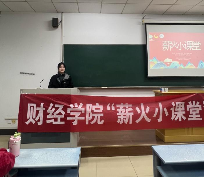 11月26日,财经学院在三江楼307举办“薪火课堂”活动。本次活动由金融2202林盈担任“讲师”,为同学们讲解政治经济学的重点知识,传授学习经验。