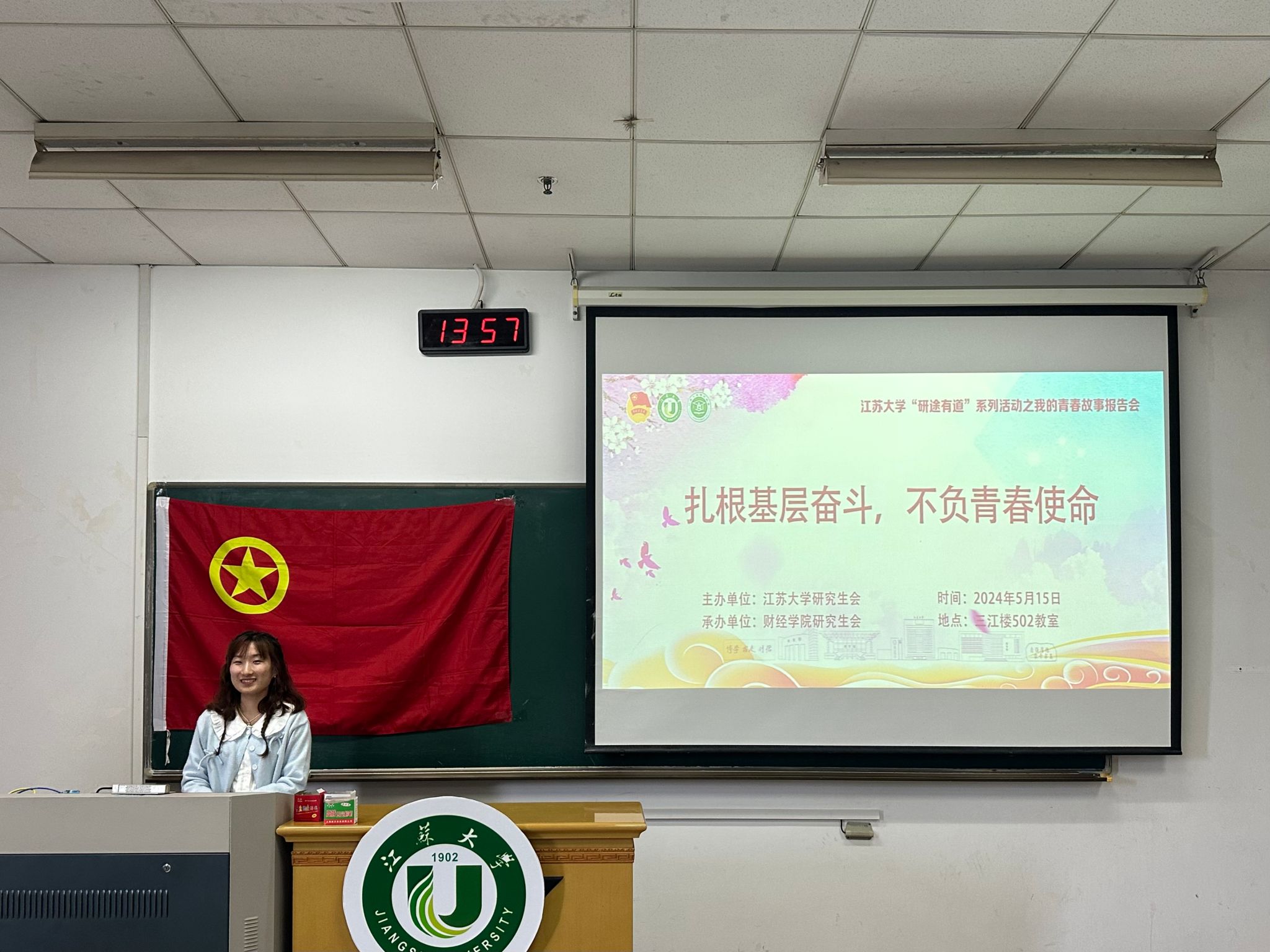 为进一步落实大学生就业引航计划,激发青年学生的社会责任感和使命感,积极响应“到西部去,到基层去,到祖国和人民最需要的地方去”的号召,5月15日,财经学院在三江楼502举办“扎根基层奋斗,不负青春使命”讲座,本次活动邀请江苏大学研究生支教团成员、校十佳青年学生顾心语主讲,50余名本研学生参加。