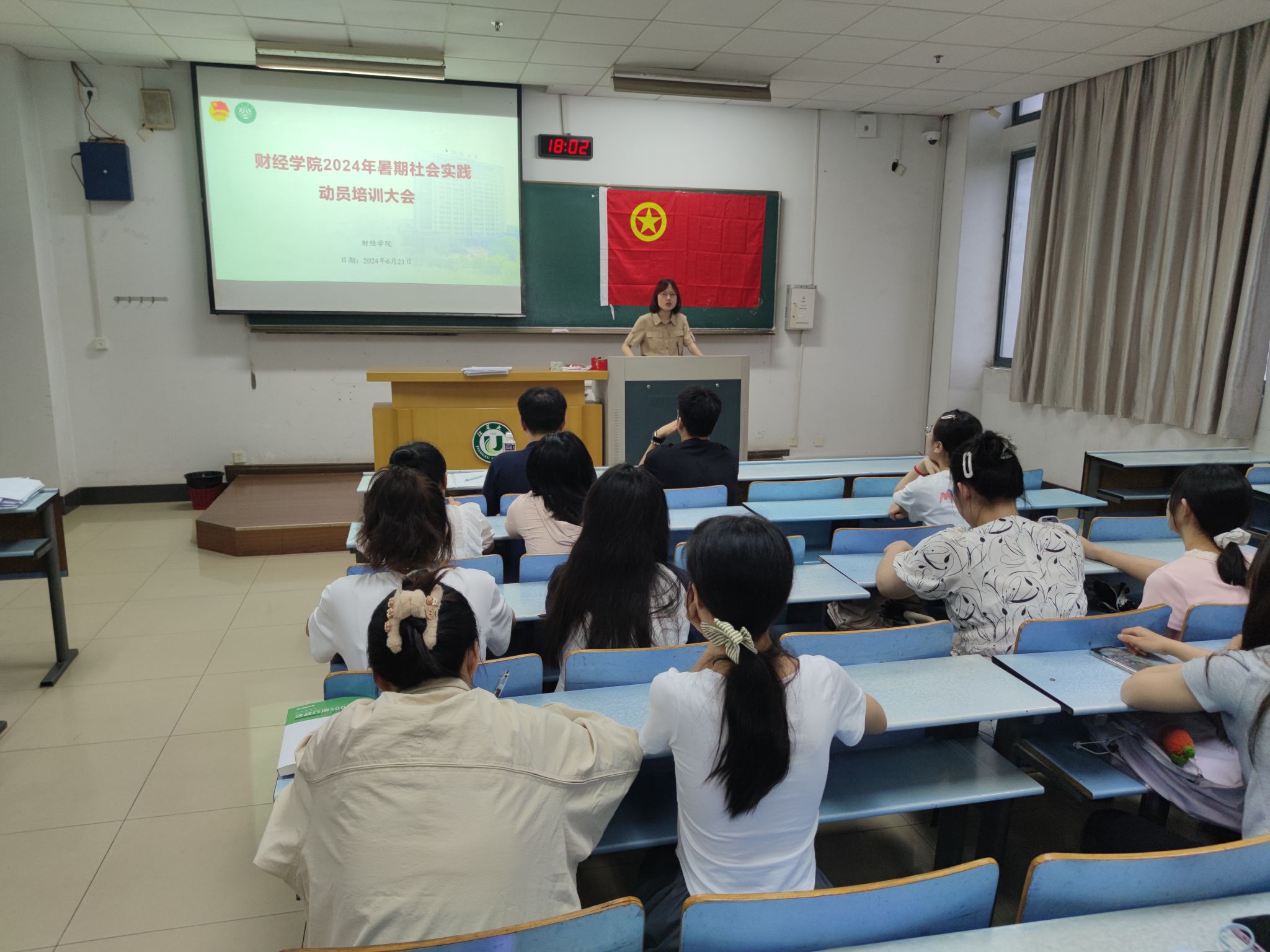 6月21日,财经学院在三江楼704举行2024年暑期社会实践动员大会,活动由财经学院团委书记张明亮主持,各班级代表120余人参加大会。