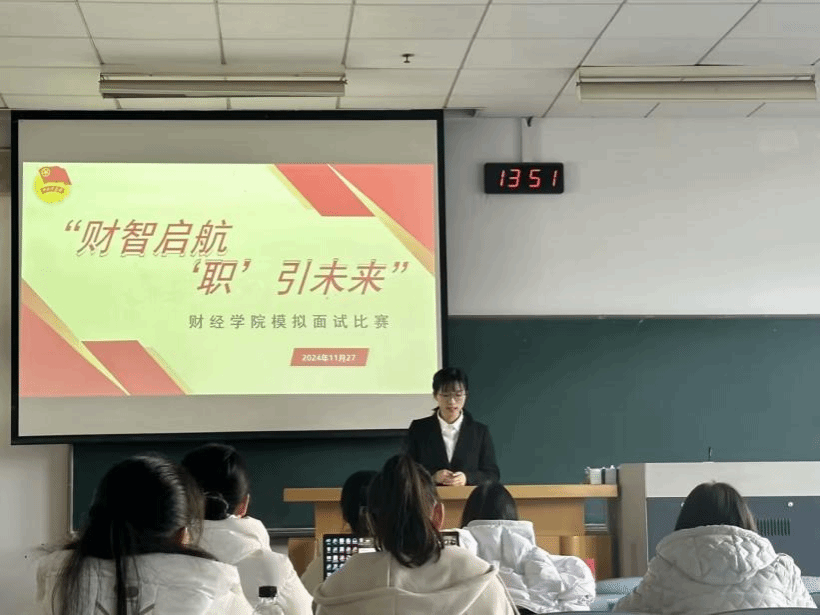 为进一步提高大学生的求职技能和应对能力,更好地了解企业用人标准和招聘流程,通过实战演练为未来的求职之路打下更坚实的基础,11月27日,财经学院在三江楼404、405、407教室举办“财智启航,‘职’引未来’”模拟面试大赛,财经学院60余名学生参加比赛。