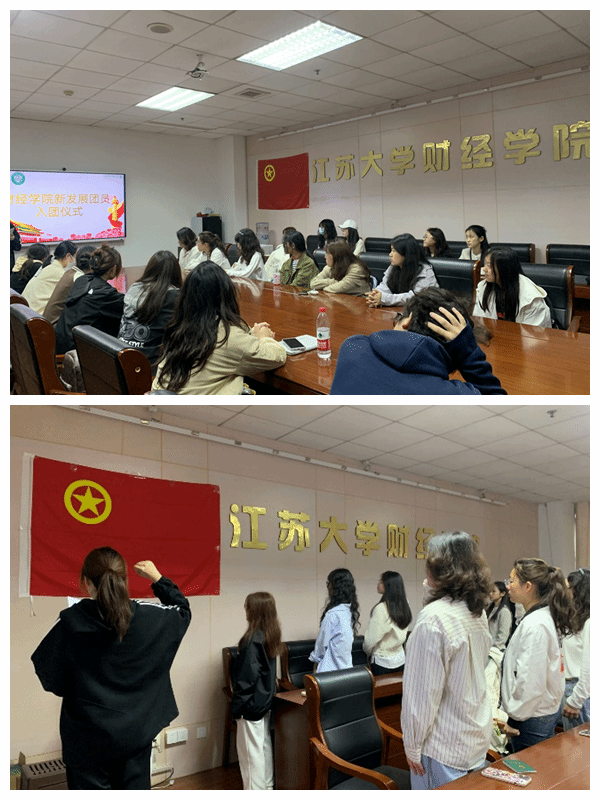 为引导广大团员青年坚定理想信念,进一步激发团员青年的光荣感和使命感,4月28日,财经学院在三江楼1309会议室举办新发展团员入团仪式,学院团委书记张明亮、辅导员沈玉玲、吴启睿以及新发展团员参加活动。