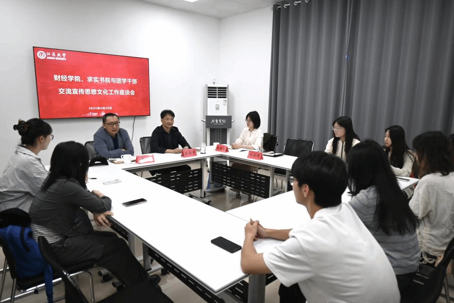 4月28日下午,求实书院、财经学院在求实书院会议室联合举办与团学干部交流宣传思想文化工作座谈会。求实书院党总支书记孙后军、辅导员刘云鹏,财经学院党委书记王祥、团委书记张明亮,以及求实书院、财经学院团学干部代表参加座谈交流。