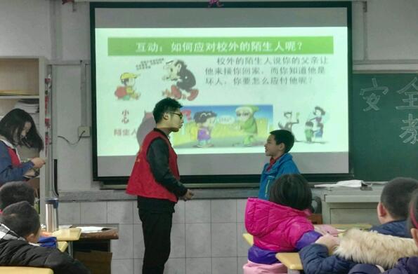 Volunteers taught the pupils the knowledge of traffic safety,food safety and personal safety through different forms,such as playing the videos,knowledge competition,imitating relative situation and so on.Especially in the knowledge competition,the atmosphere was very active.The pupils were eager to know more knowledge.