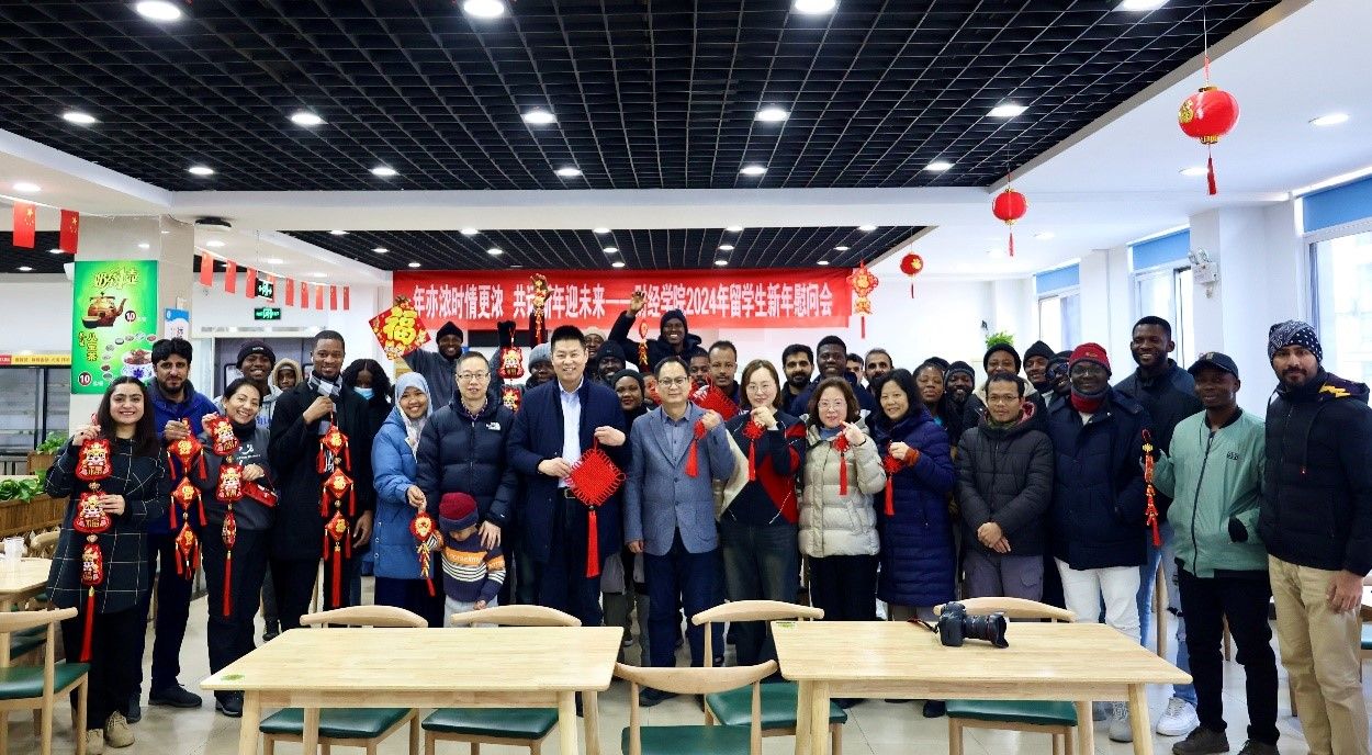 2023年12月29日下午,财经学院在江苏大学民族餐厅举行主题为“年亦浓时情更浓,共话新年迎未来”的2024年留学生新年慰问会。财经学院院长胡绪华,副院长鄢军、李靠队,院国际教育办公室主任朱妍婕,以及来自10多个国家的40余名留学生代表参加了新年慰问会。
