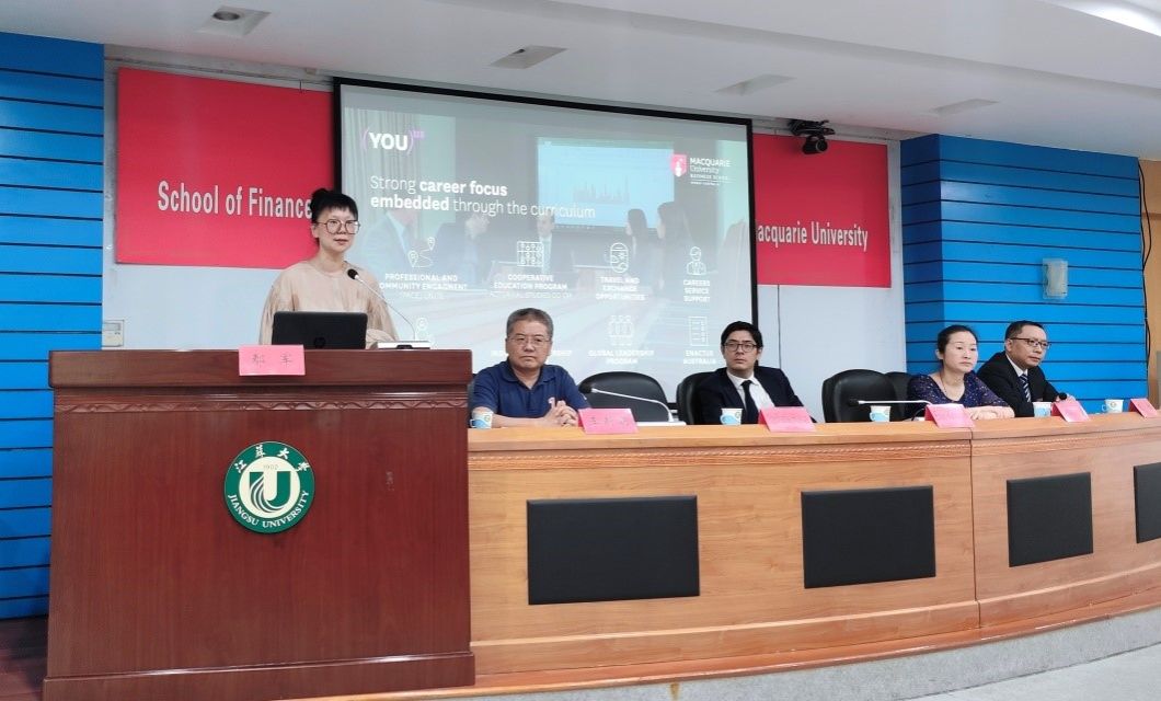 麦考瑞大学商学院院长艾瑞克·奈特,国际部部长大卫·哈瑞森,商学院副院长斯蒂芬妮·黄、执行主任大卫·山姆,国际部大中华区主管史黛拉·王,中国办事处经理张钰慧,以及教育部中高计划全国运营中心海外事务部部长方芳、专员周思颖,江苏大学教务处副处长李新朝等中外嘉宾出席活动。