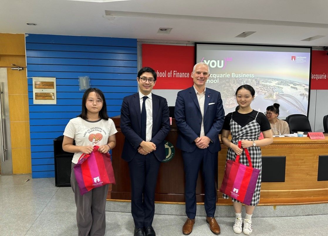 随后,麦考瑞大学商学院有关负责人与财经学院、教务处、金融系负责人及金融学(中澳学分互认联合培养项目)学生,就人才培养、学分互认等话题进行了现场交流。麦考瑞大学商学院、国际部主要负责人还为该项目新入学的学生发放了纪念品。
