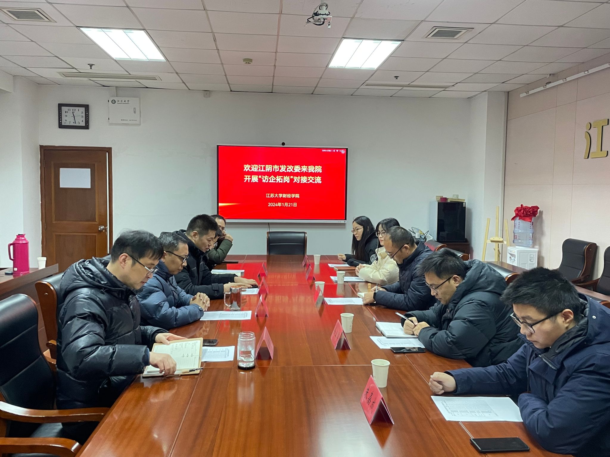 为深入贯彻落实党中央、国务院关于高校毕业生就业工作的决策部署,扎实推进“访企拓岗促就业”专项行动,进一步深化校企合作、产教融合。1月21日,江阴市发改委副主任许瑞刚及相关工作人员一行来我院开展“访企拓岗”对接交流活动,学院党委书记王祥、院长胡绪华、党委副书记、副院长刘群东、办公室主任王欣、辅导员林汉连参加了本次活动,本次活动由院长胡绪华主持。