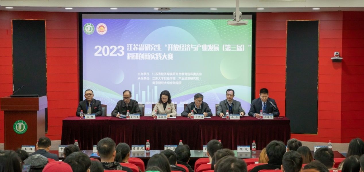 11月18日,由江苏省经济学类研究生教育指导委员会主办、江苏大学财经学院(产业经济研究院)和南京财经大学金融学院共同承办的2023年江苏省研究生“开放经济与产业发展(第三届)”科研创新实践大赛在江苏大学成功举行。来自江苏省商务厅、南京大学、东南大学、首都经济贸易大学、中国海洋大学、华中科技大学、华东师范大学、上海财经大学、华东理工大学、苏州大学、四川农业大学、南京航空航天大学、南京师范大学、中国矿业大学、南京信息工程大学、南京财经大学、南京审计大学、江苏大学、江苏科技大学、苏州科技大学、武汉科技大学、西南科技大学等近30家单位的专家学者、青年教师及研究生代表共150余人参加了此次大赛。