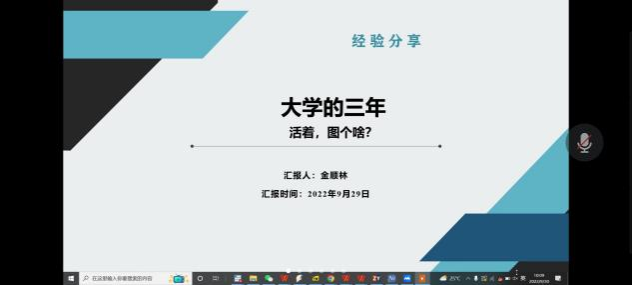 为使新生尽快适应大学生活和学习,9月30日,财经学院金融2202班开展线上主题班会。班会由学业导师江红莉主持,辅导员张颖和金融2202班全体同学参加。