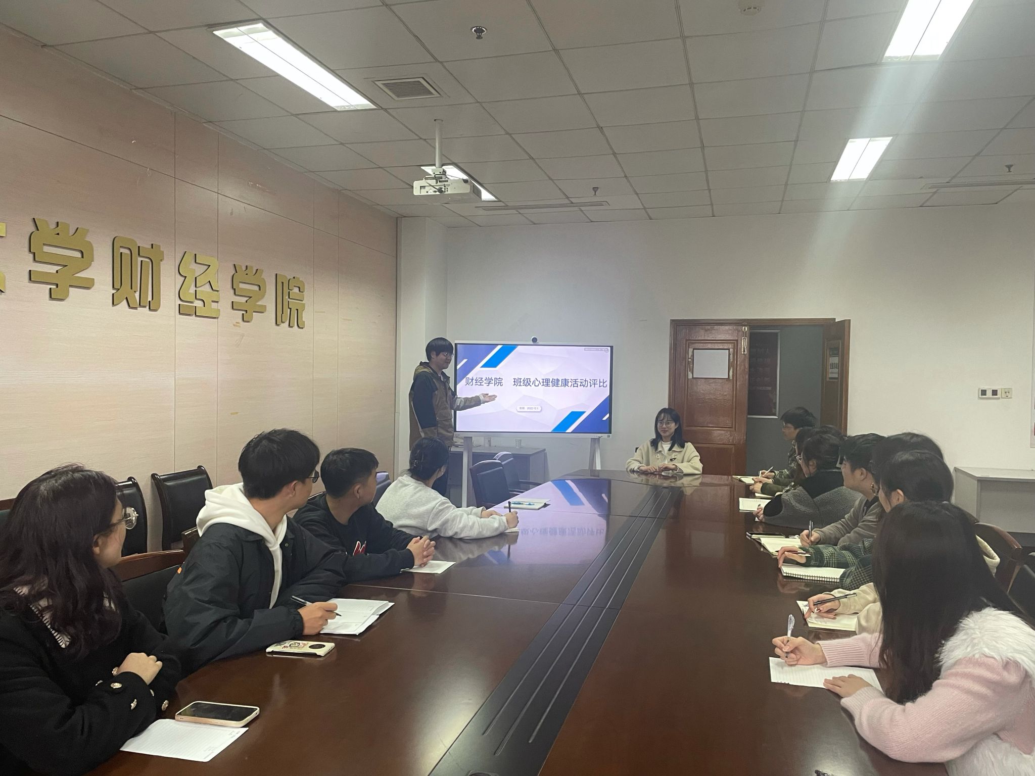 2022年12月1日下午,财经学院在三江楼1304C举办了2022下半年班级心理健康教育评比活动,财经学院心理辅导员李华、心理协会全体成员,各班心理委员参加评比活动,活动由李华主持。