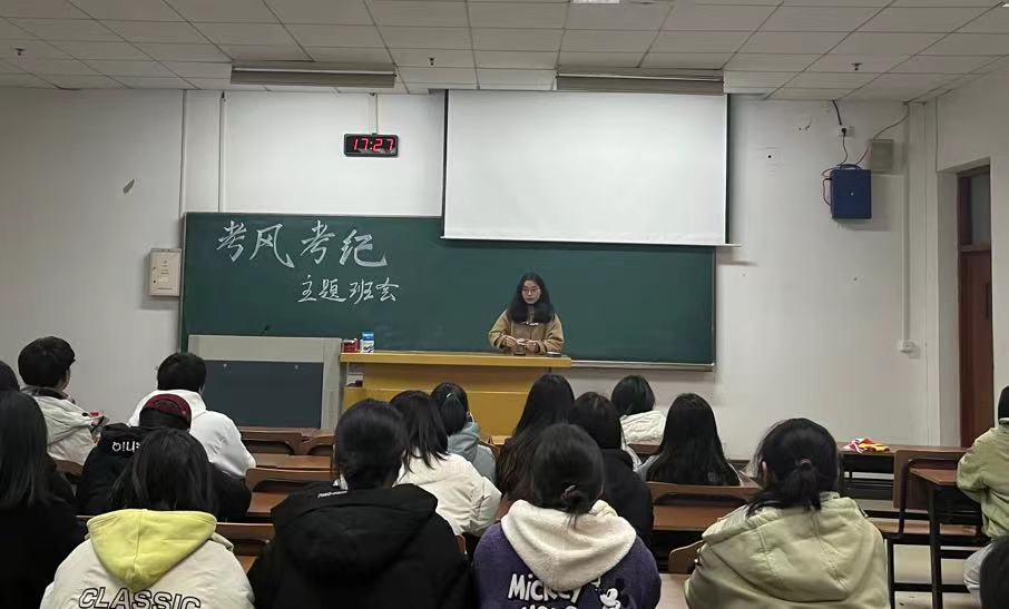为迎接即将到来的英语四级考试和期末考试,12月2日,2022级辅导员张颖组织开展了以严肃考风考纪为主题的班会。国贸2201、国贸2203和金融中澳2201班全体同学参加。