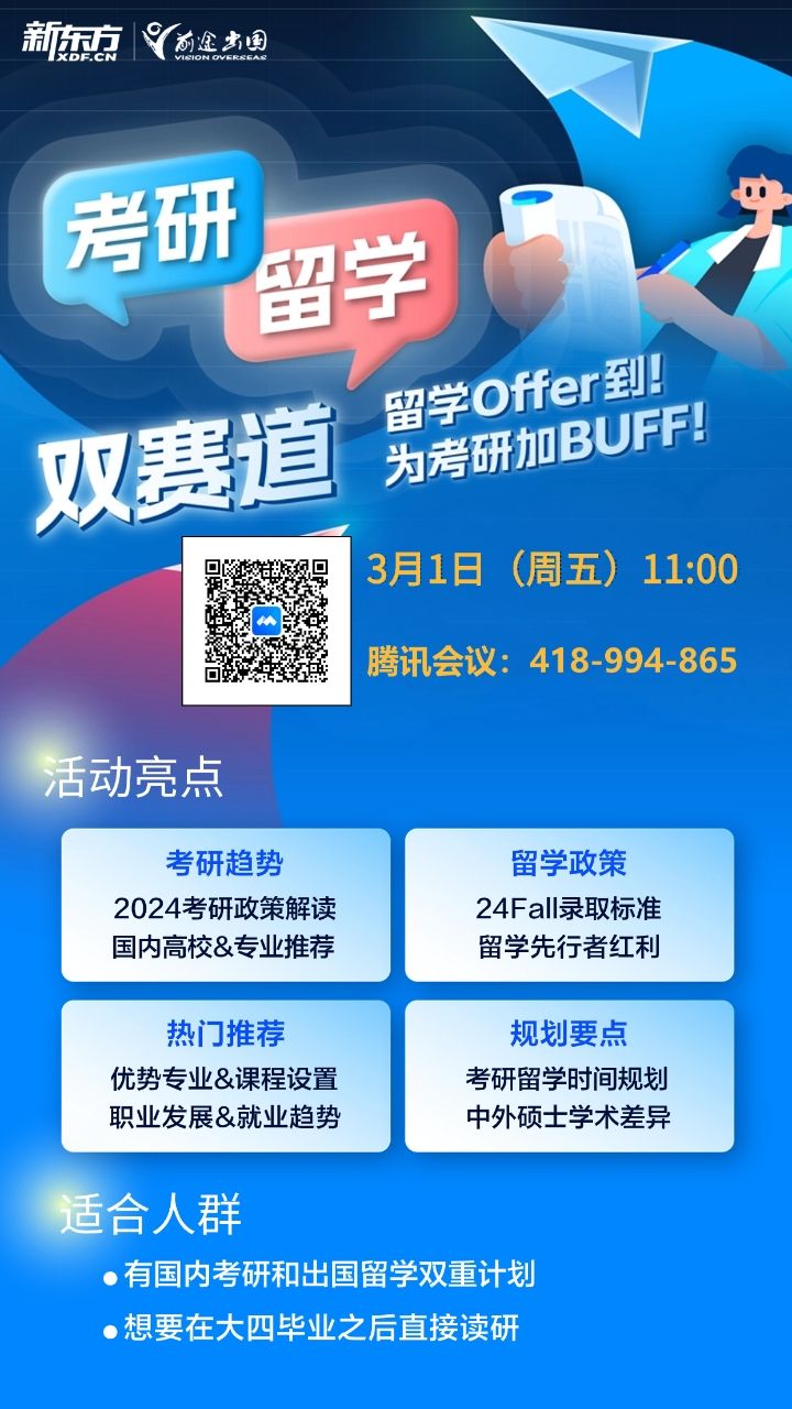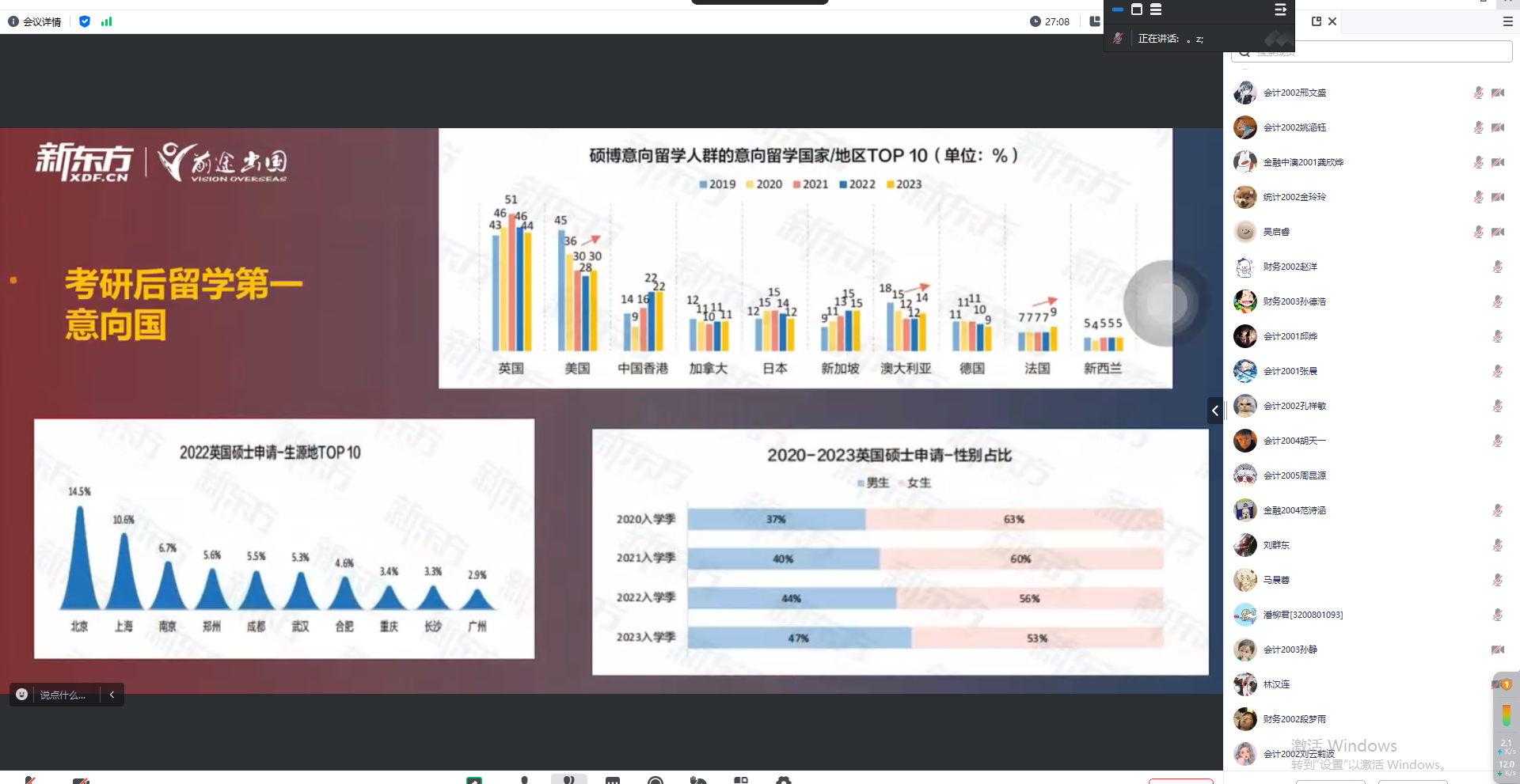 为了更好地帮助2024届毕业生做好职业规划与分类指导,激发学生的奋斗精神,助力学生成长成才。3月1日,财经学院举办出国留学咨询专题线上讲座。本次讲座特邀新东方首席规划师金福玉老师。学院副书记、副院长刘群东、相关辅导员及2024届部分毕业生参加了本次讲座。