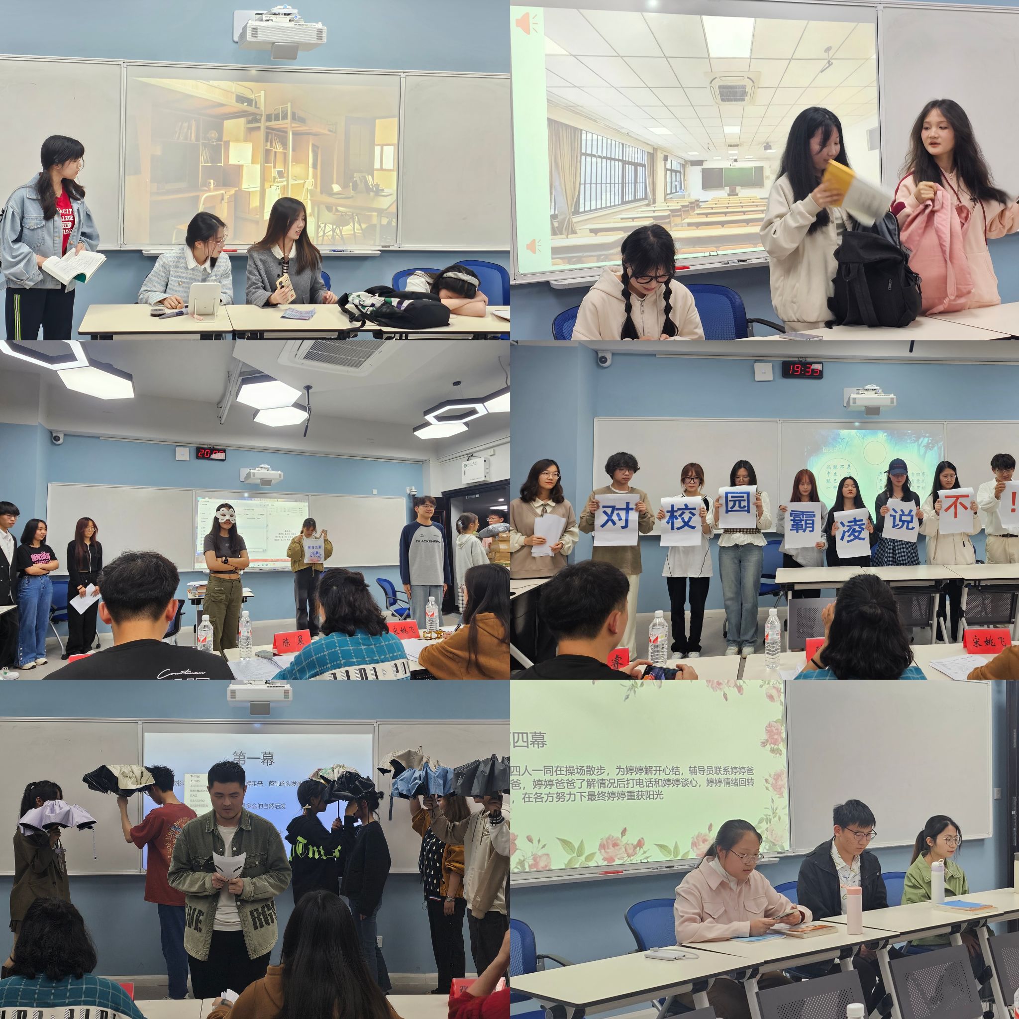 在比赛中,同学们充分发挥创意,用深情的演绎和深刻的思考为观众呈现了一场场感人至深、富有教育意义的心理情景剧。《新生》让我们懂得心理疾病不是个人的错误,需要周围人的理解与支持,才能让他们重获希望。《与那良夜作别》展现了戴着面具在黑夜中的虚饰纷繁,只有脱下面具告别虚假,找寻内心最真实的自己,才能迎接美好生活。《破茧荧碟,南栀向暖》教会我们面对校园霸凌不该沉默,要勇敢地站起来对校园霸凌说不。《心无褶皱,行至春光》启示我们警惕杀猪盘,仔细分辨各种骗局,遭遇欺骗后重新调整状态,树立正确的价值观。《盲茫》结合大学生社团活动和学习的现实情况,教会我们不要盲目出发,明确目标才能更好奔赴梦想。《面具之下》让我们明白不必迎合所有人,爱自己才是终身浪漫的开始。各个剧组精心准备,一场场生动的表演为观众们带来了扣人心弦的视觉盛宴。