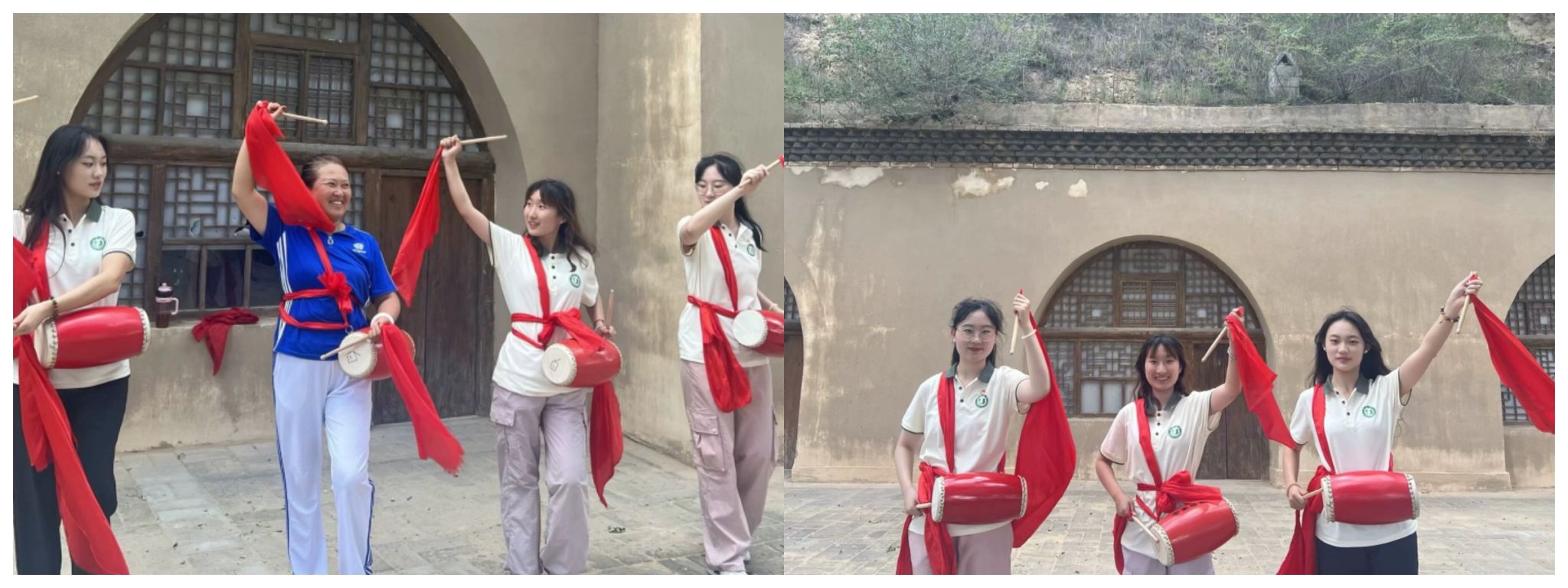 在中共中央西北局旧址的广场上,团队成员们与安塞腰鼓表演者们共同学习并表演了国家级非物质文化遗产——安塞腰鼓。成员们则在他们的带领下,从最初的生疏到逐渐融入节奏。“这不仅是一次难忘的文化体验,更是一次心灵的洗礼。我们将继续以实际行动传承红色基因,弘扬中华优秀传统文化。”团队成员感慨地说。