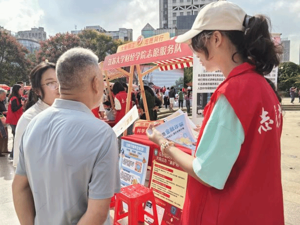 9月29日,江苏大学财经学院志愿服务队亮相“大爱镇江 志愿同行”公益集市活动。