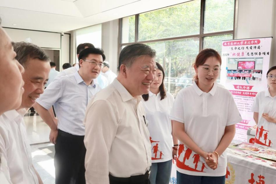 活动中,“益路髓行”团队志愿者代表汪雨霏作为全国红十字青年网络成员代表,向中国红十字会会长陈竺先生汇报我校红十字工作和“益路髓行”团队开展活动情况,陈竺会长对团队14年以来的接续传承表示肯定,希望志愿者继续弘扬“人道 博爱 奉献”的红十字精神,为推动红十字事业发展贡献青春力量。
