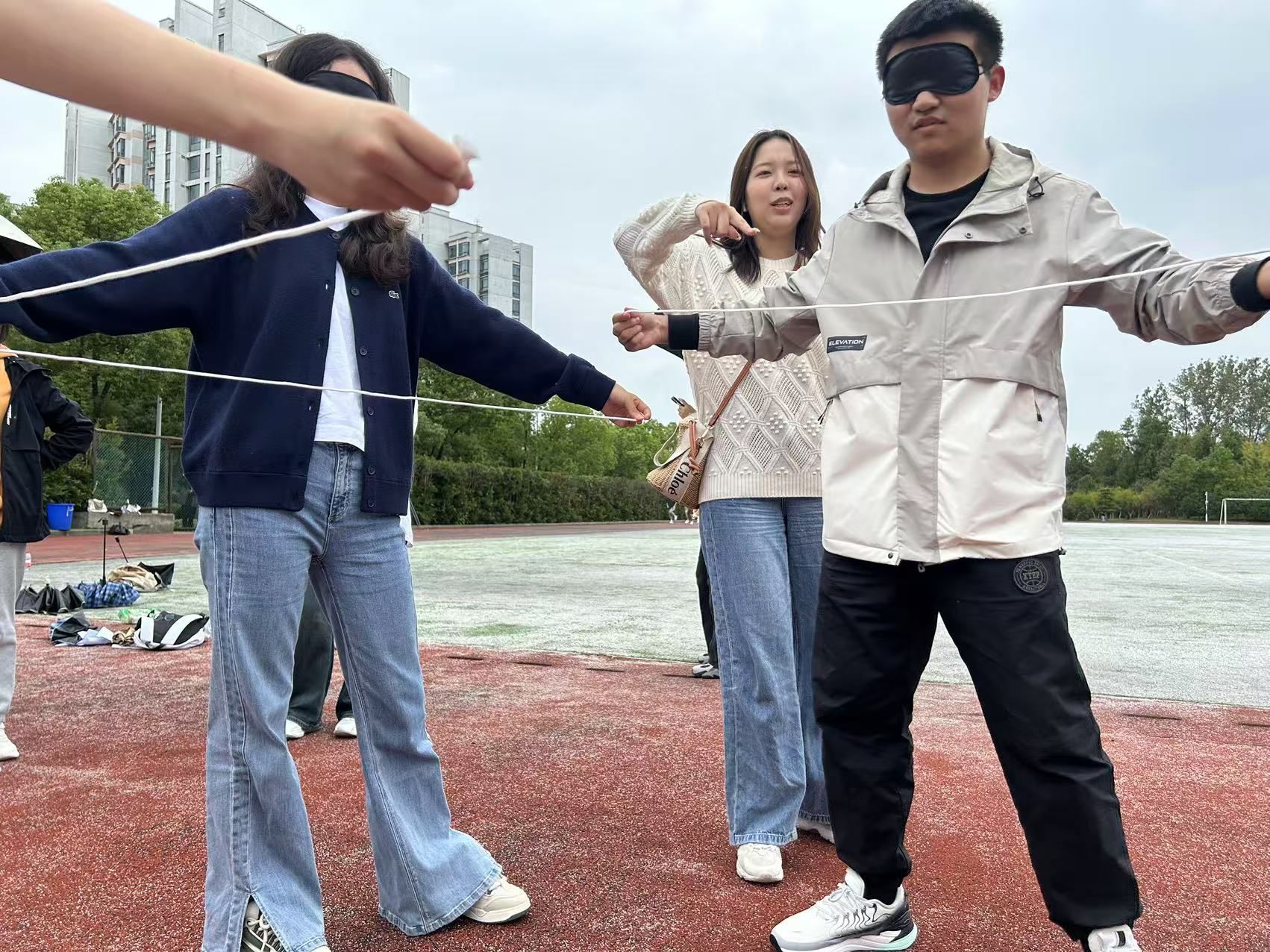 本次活动以趣味运动会的形式开展,让同学们在轻松愉快的氛围中表达自己的情绪和应对压力。活动共设置四个环节:蜡笔绘心、压力纸飞机、心界导航以及协心绘界。每支队伍到相对应的游戏点位共同完成游戏。在蜡笔绘心游戏环节,参与者们通过艺术创作的方式,有助于更好地认识和处理自己的情绪,提升自我认知和情绪管理能力。在压力纸飞机环节,同学们通过纸飞机放飞自己的烦恼与压力,以更加积极乐观的态度面对困难和挑战。在心界导航环节,组内选出一个指挥者指导其他被蒙上眼睛的同学跨过杯子垒起的“雷区”,这个游戏有利于增强成员间的信任与凝聚力。在协心绘界游戏环节,参与者们蒙眼解开打结的绳子后共同围成一个三角形,有利于同学通过协作与沟通来克服未知环境中的挑战。通过富有趣味性、体验性的游戏、互动等方式,为参与者们提供一个放松心情、增强团队凝集力、促进心理健康的机会。