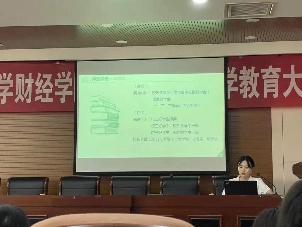 9月24日,财经学院辅导员王艳慧老师在三江楼1301会议室,通过线上为主、线下为辅的方式以“新时代 奖学金助你腾飞”为主题,为2021届全体新生开讲入学第一课。