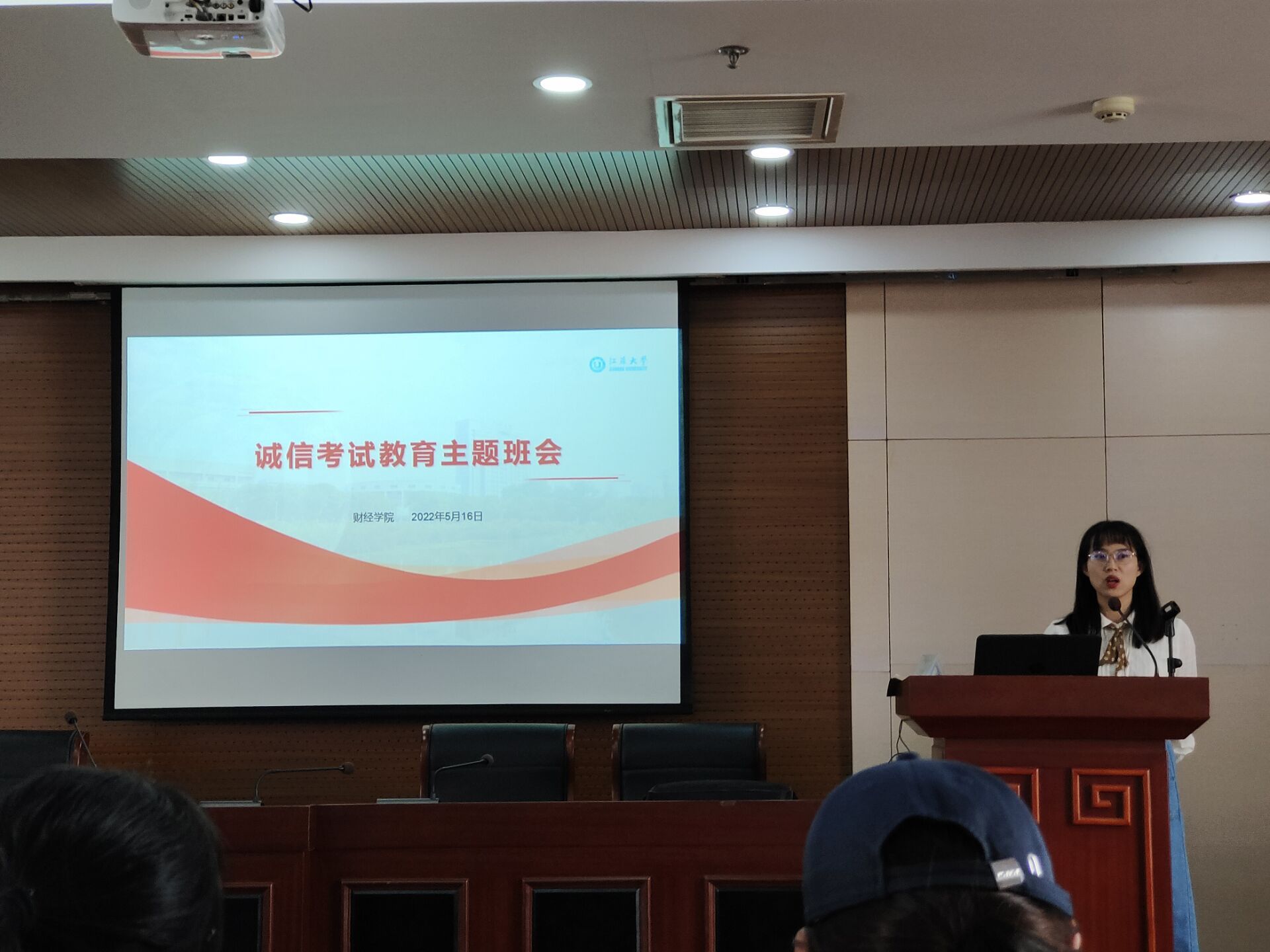 为营造公平公正的考试环境,增强学生自主诚信应考意识,弘扬优良学风考风,培养学子刻苦自律,诚实守信的良好品质。2022年5月16日,2021级辅导员李华老师组织召开了以“诚信考试”为主题的期末考试诚信教育会暨考前宣誓大会,国贸2101、2102班全体同学参加。