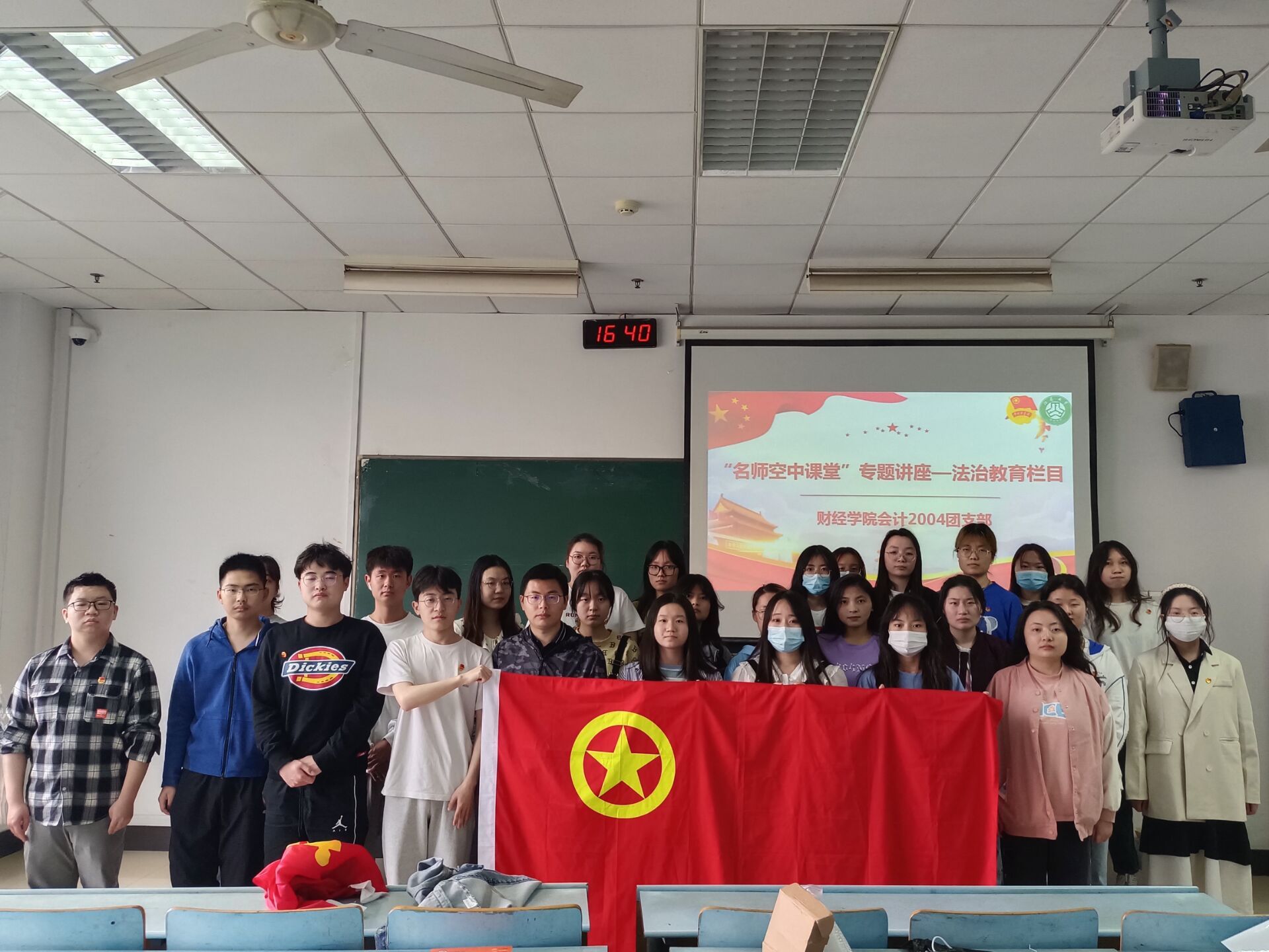 为进一步引导大学生树立社会主义法治理念和法治意识,加强支部法治教育,大力弘扬法治精神,财经学院会计2004团支部于5月13日在三江楼802举办“名师空中课堂”法治专题教育讲座。2020级学生辅导员林汉连和支部全体团员参加。