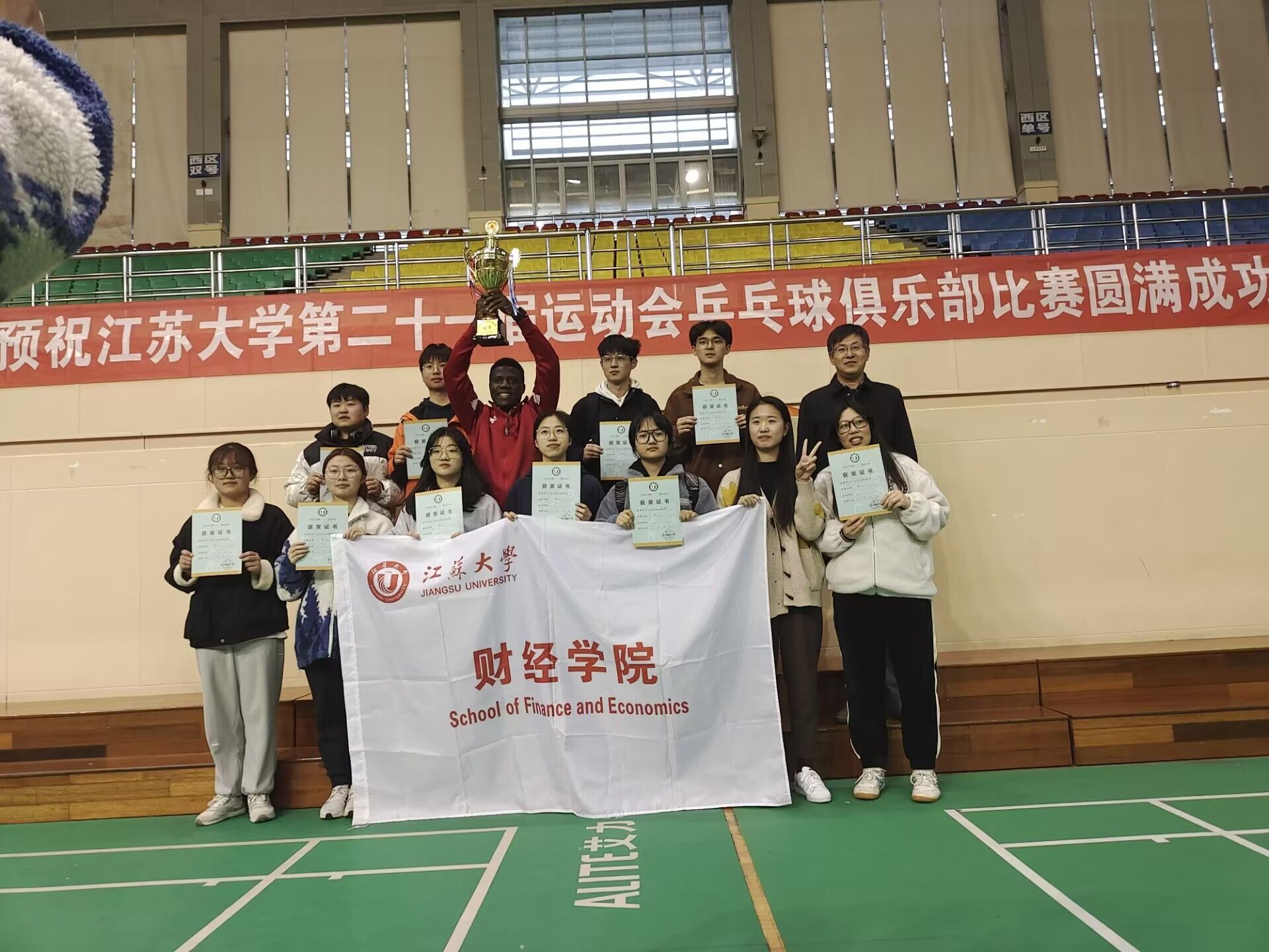江苏大学第二十一届运动会乒乓球俱乐部比赛于3月25日-26日在体育馆顺利举行。我院乒乓球队团结一心、奋勇争先,夺得了本次比赛的冠军!