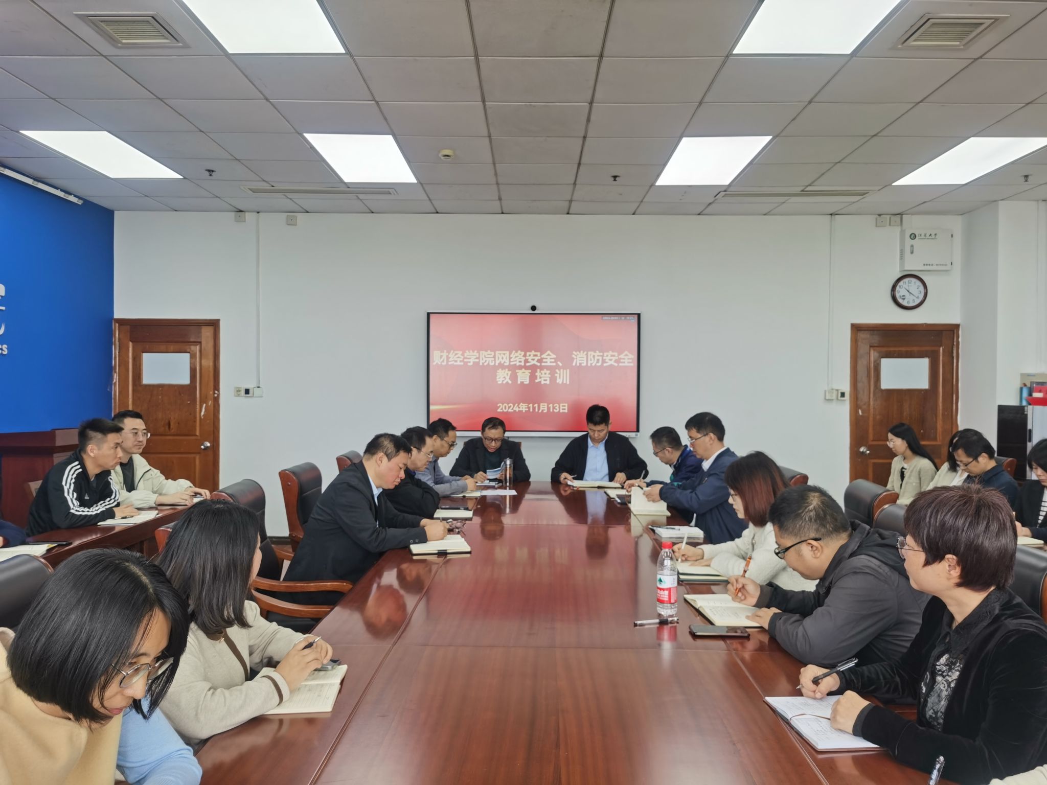 为提升学院广大教师安全防范意识,进一步维护校园安全稳定,11月13日上午院周会结束后,财经学院党委行政在1304D会议室举办2024年度网络安全、消防安全教育培训。院党委书记王祥、院长胡绪华等全体院领导、党委委员,科级干部,各系部、支部负责人以及行政办工作人员参加了培训。